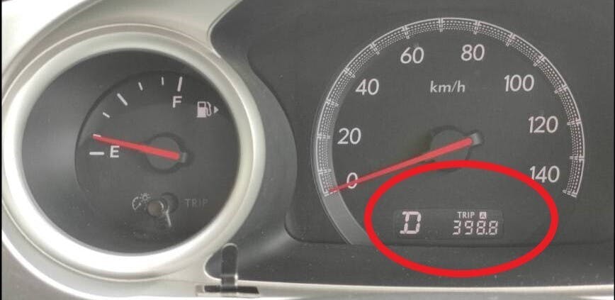 ②398.8km走行!あれ?まだガソリンランプが点滅しない。どこまで伸びるんだろう??