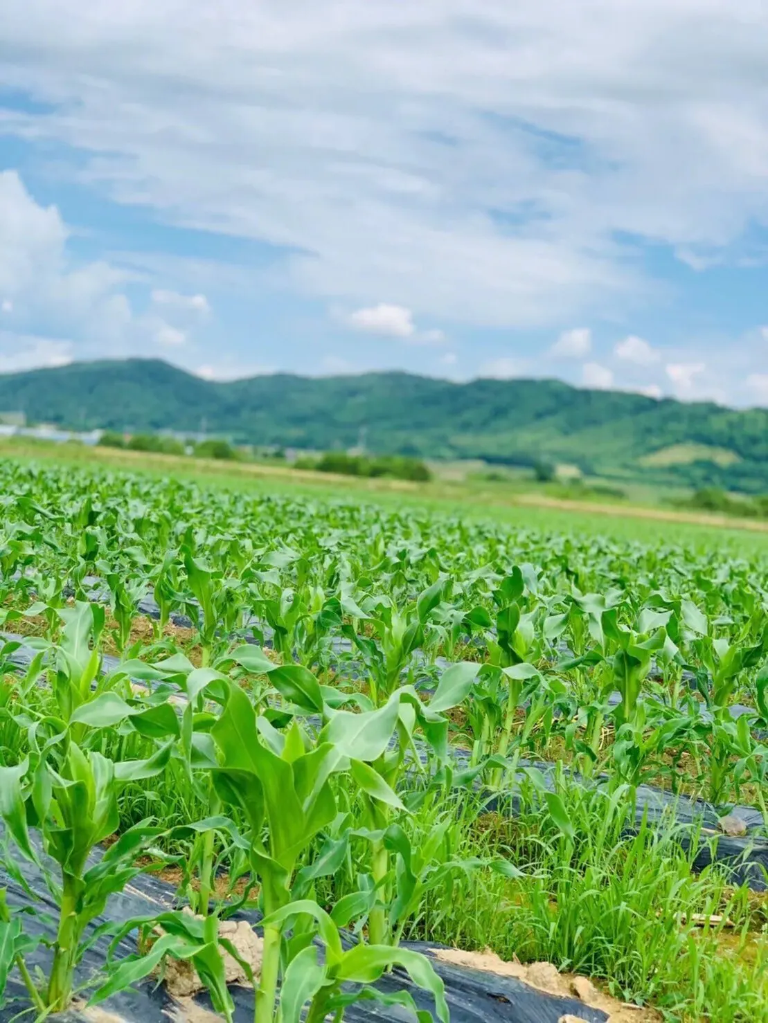 植え付け完了した とうもろこし畑