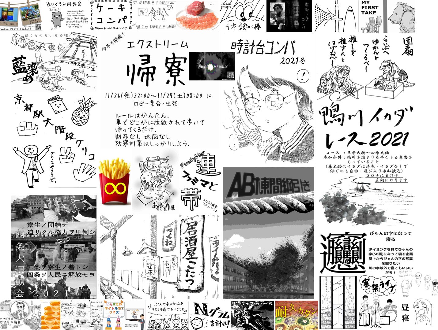 熊野寮祭開幕まで3週間を切り、今年の寮祭企画が出そろいました!その数なんと250以上!!寮祭HPから全ての企画の概要や企画画像が見られるので、本文中のURLから是非ご覧ください。本当に様々な企画がそろっているので参加してみたい企画を探すのもまた一興です。ちなみに、寮祭HPには寮生のコラムなども載っているので読み応えがあって面白いです!よかったら覗いてみてください。