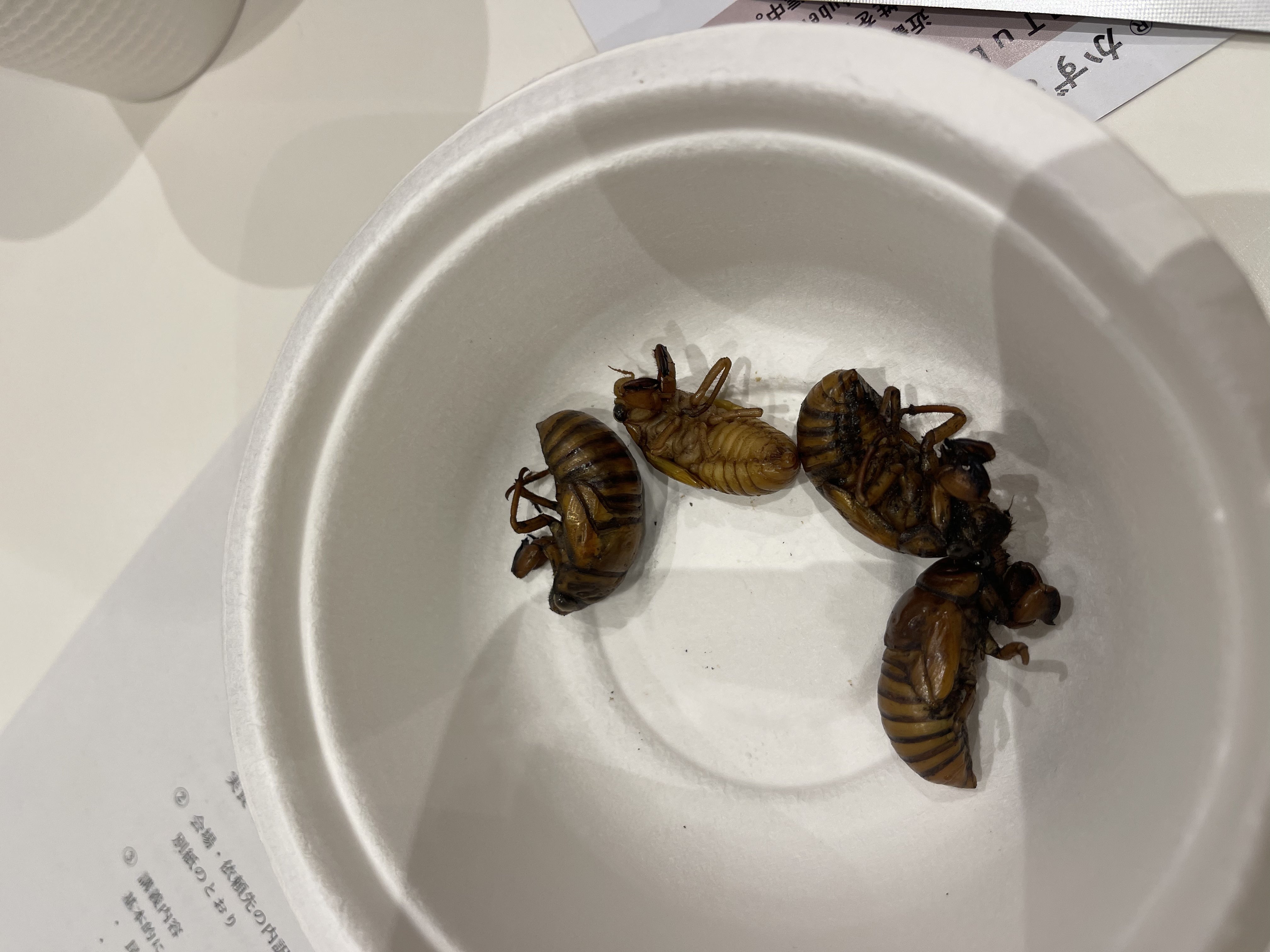 アブラゼミとクマゼミの素揚げと塩ゆで、今年の夏にとれて冷凍していたものです。
