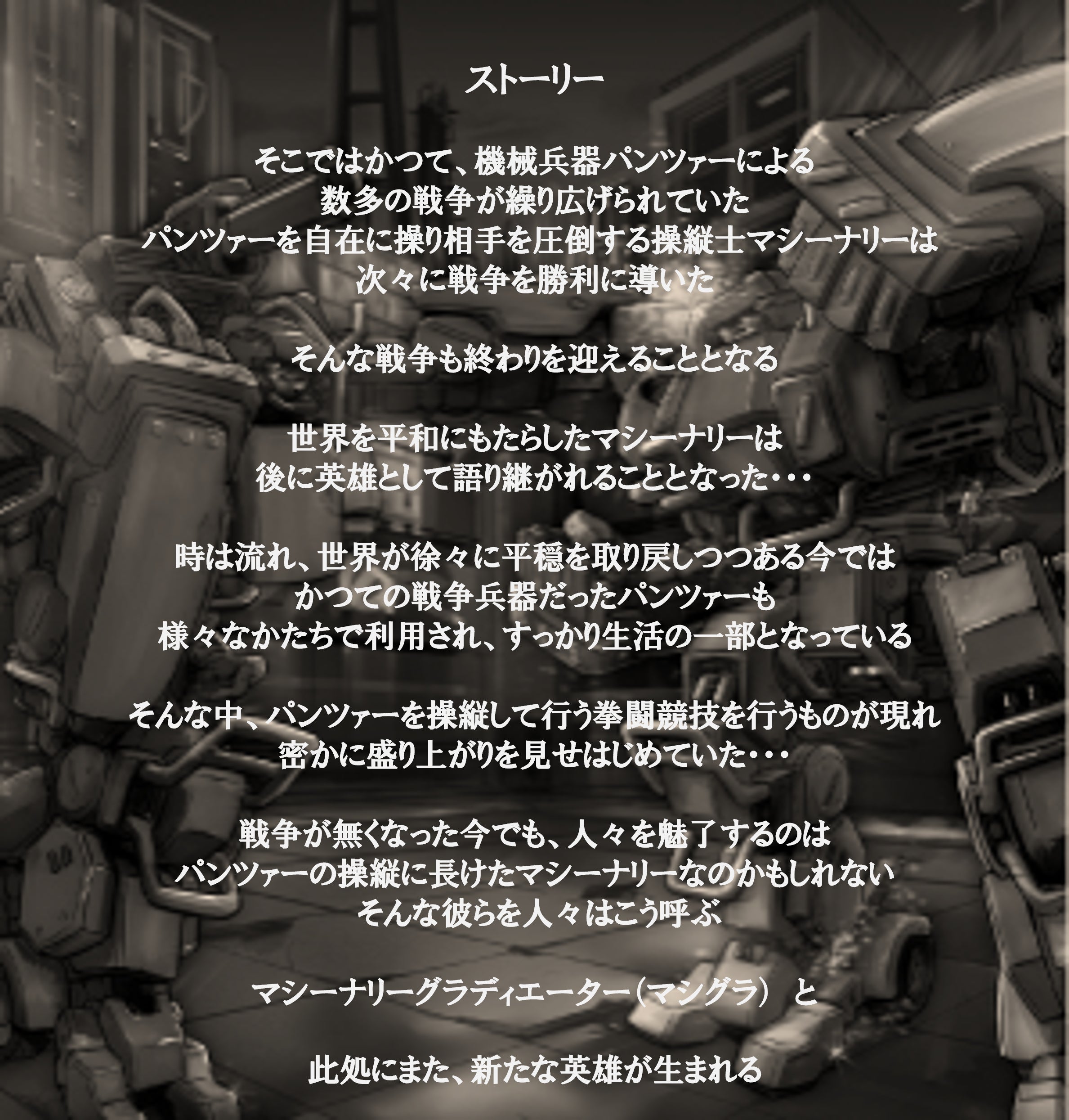 1対1で行う機械兵器を使用した拳闘競技の"操縦士"→「マシーナリーグラディエーター」