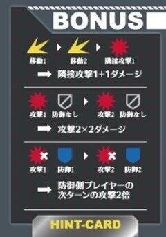 移動カードを複数枚使用してから行う”隣接”攻撃には、1ダメージが加算されます。
