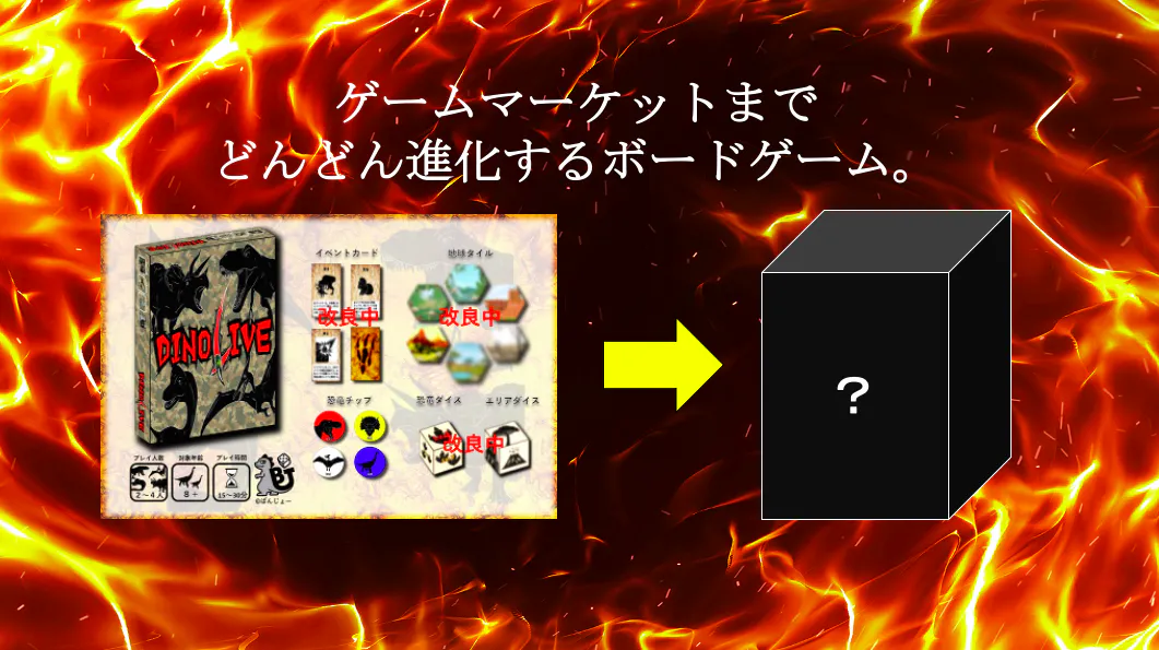 そして、今回のプロジェクトの目標であるゲームマーケットの大賞に選ばれなくとも製品化の声がたくさん上がるような商品へと進化させるつもりです。