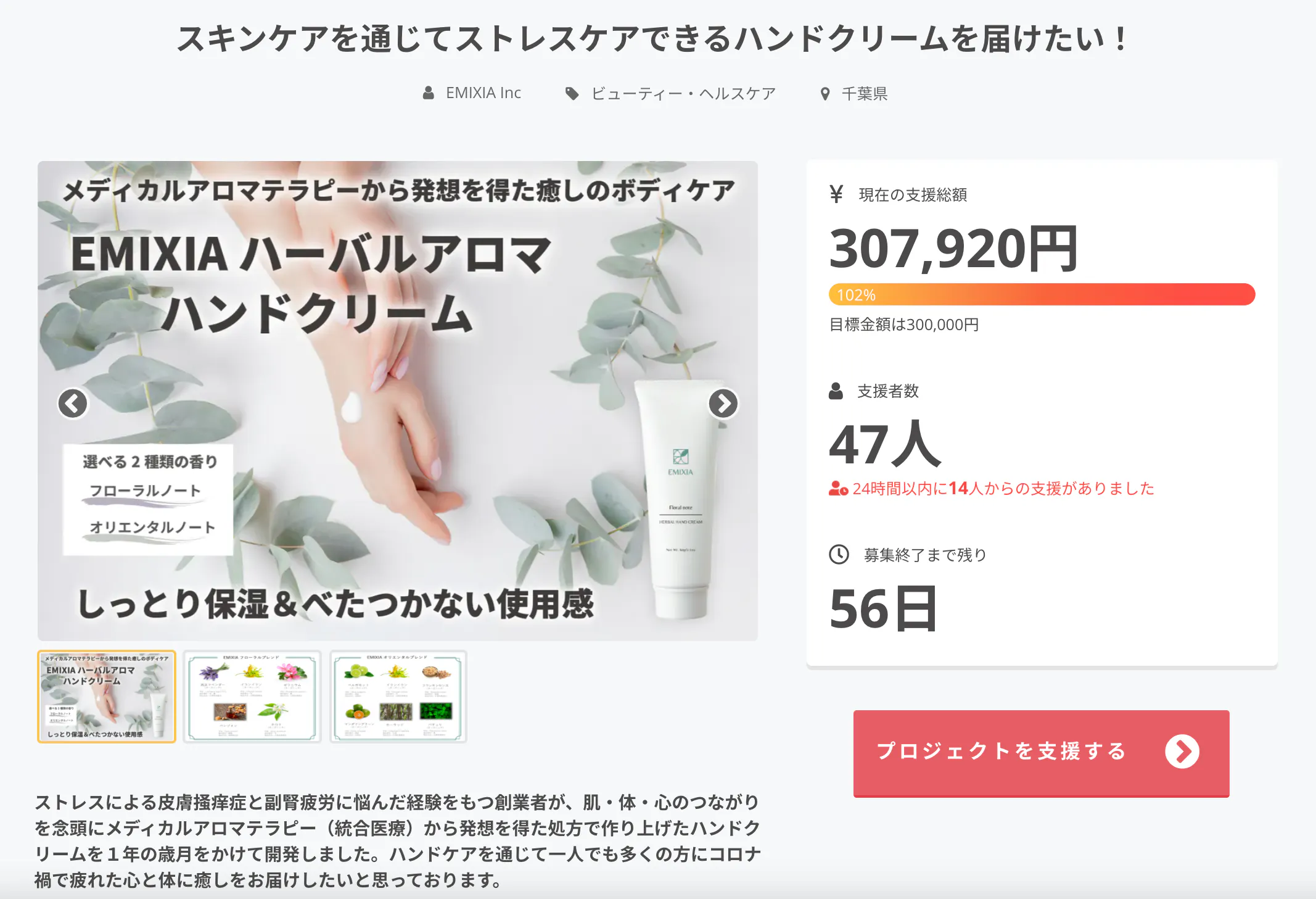 この度は私たちのハーバルハンドクリームのプロジェクトに数多くのご支援をいただき