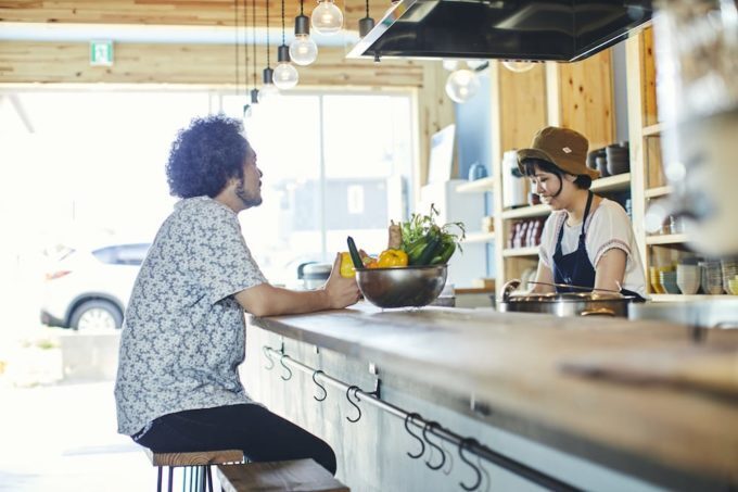 食器の音やBGM、話し声や炒める音を聞きながら。気になるお店の情報を交換したり、最近のまちの様子を知ったり。