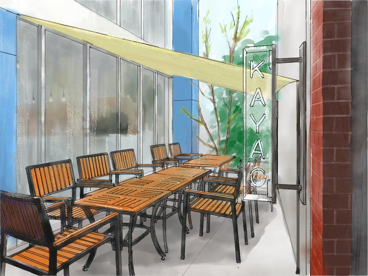 *中庭のテラス席に屋根を設置