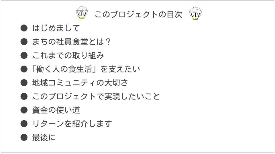 ぜひまちの社員食堂の取り組みを知っていただき、一緒に盛り上げてくださる仲間を募集しております!拙い文章ですが、最後までお付き合いいただけますと幸いです。