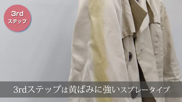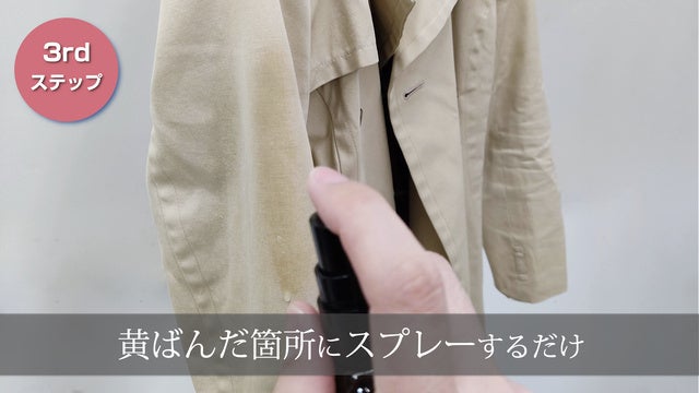 大事なコートが黄ばんじゃった〜!なんて経験は誰にもあると思いますそんなときも大丈夫。スプレーすると黄ばみが取れやすくなります。