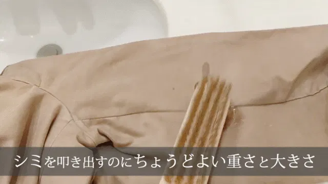 反対面はしみ抜きブラシになっていて、適度な重さと硬さでシミを叩き出します。