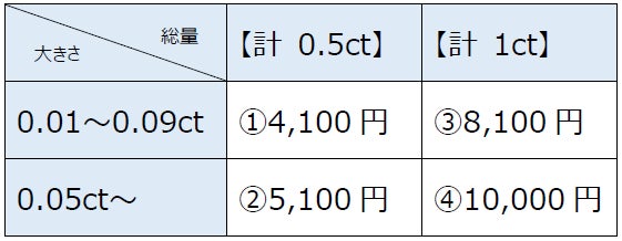 ご紹介した天然ダイヤモンドで下記の①~⑤の5種類のリターンを準備させていただきました。