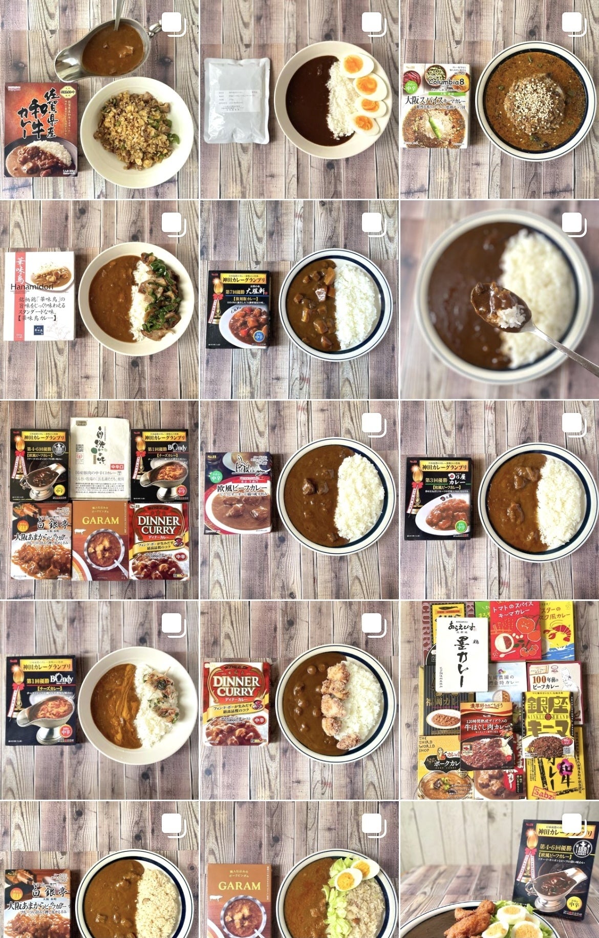 ▲ レトルトカレーを食べてインスタグラムに投稿してます。