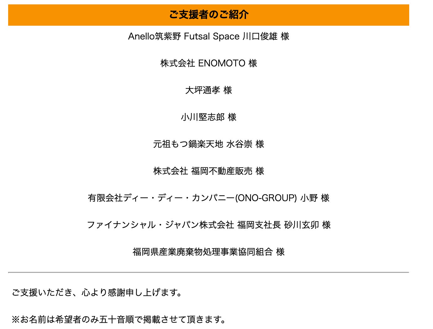 ◇福岡J・アンクラス一同よりご支援の感謝の気持ちを込めてメールをお送りいたします。