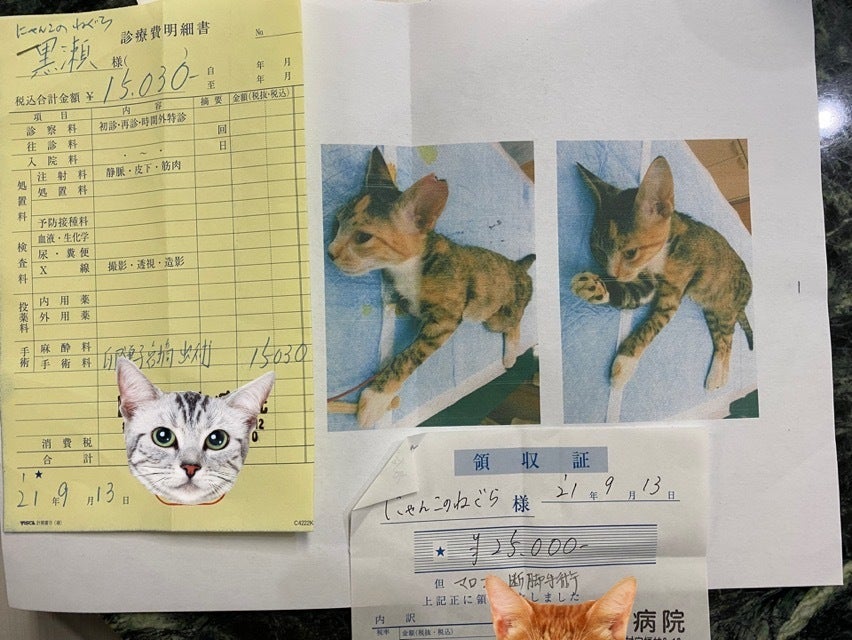 無事に、三毛猫マロンちゃんの断脚手術、卵巣子宮摘出術終わりました。