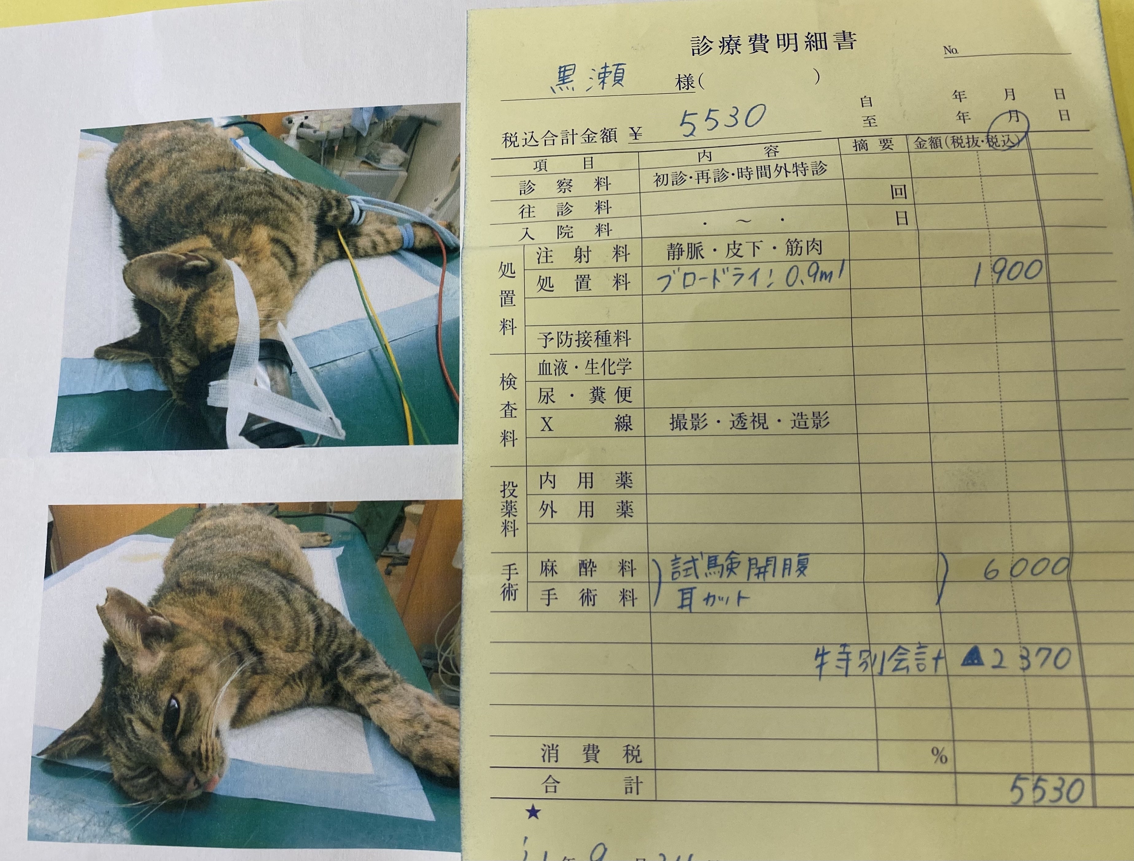 病院に連れて行ったら、お腹に手術痕が…確認したらやっぱり手術済みでしたので、耳カットをしてもらいました。