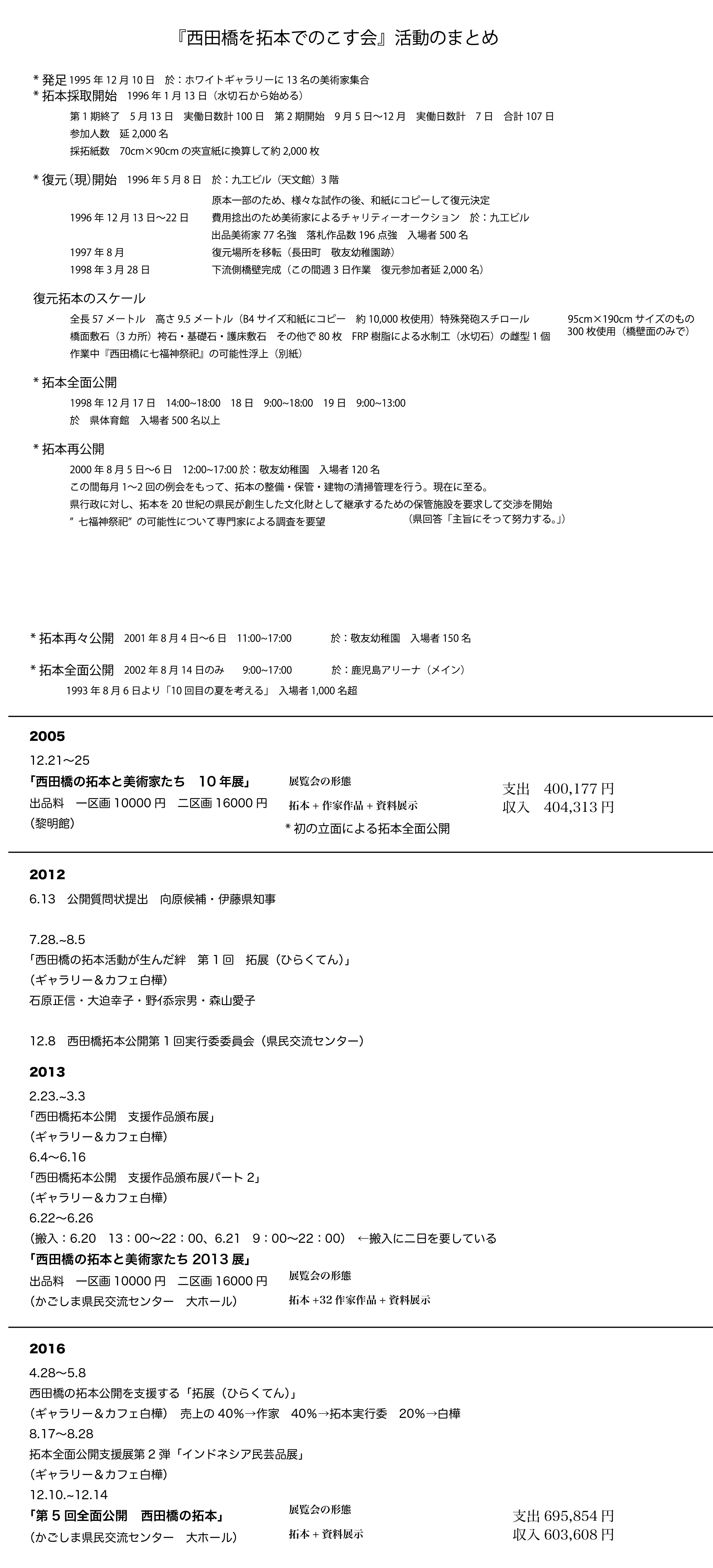 この「西田橋の拓本」を往時の西田橋を再現出来る公的な資産として、行政による継承・保存を求めたいと考えております。
