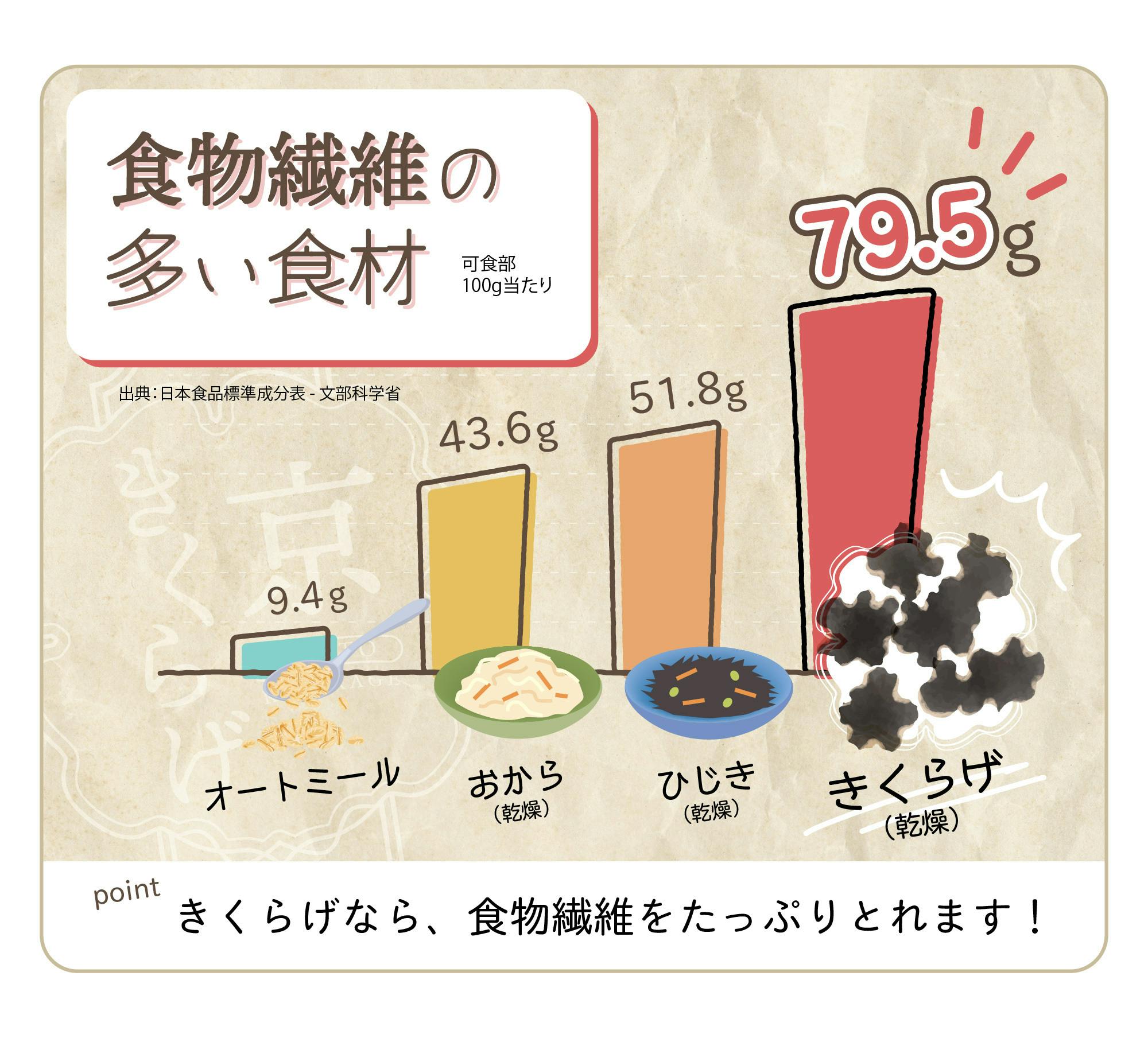 (きくらげの持つ食物繊維はゴボウの8倍です。)