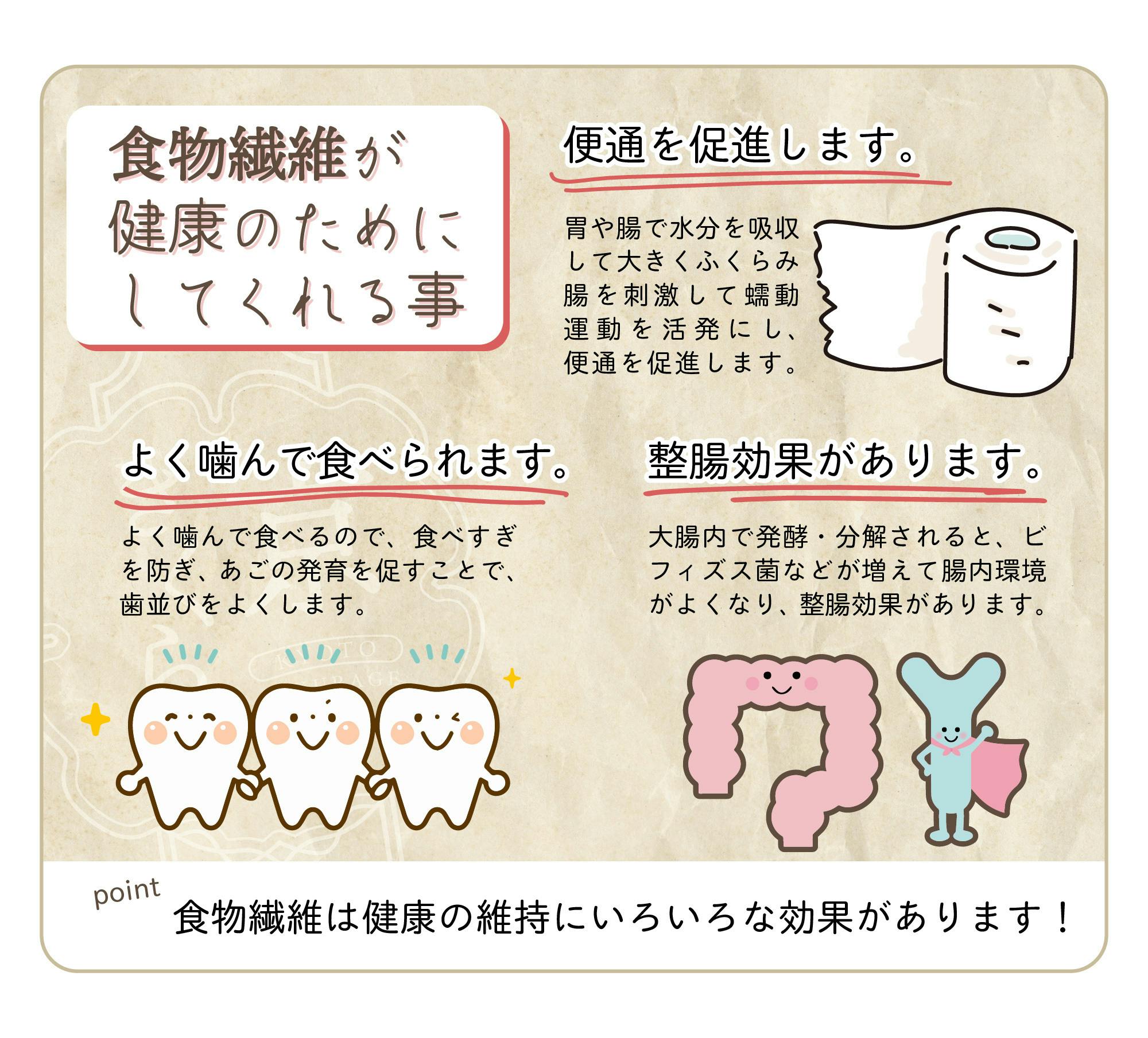 食物繊維は糖質の吸収を穏やかにしてくれるので糖尿病や肥満の予防も期待されています。整腸効果もあるので腸活にもぴったり。