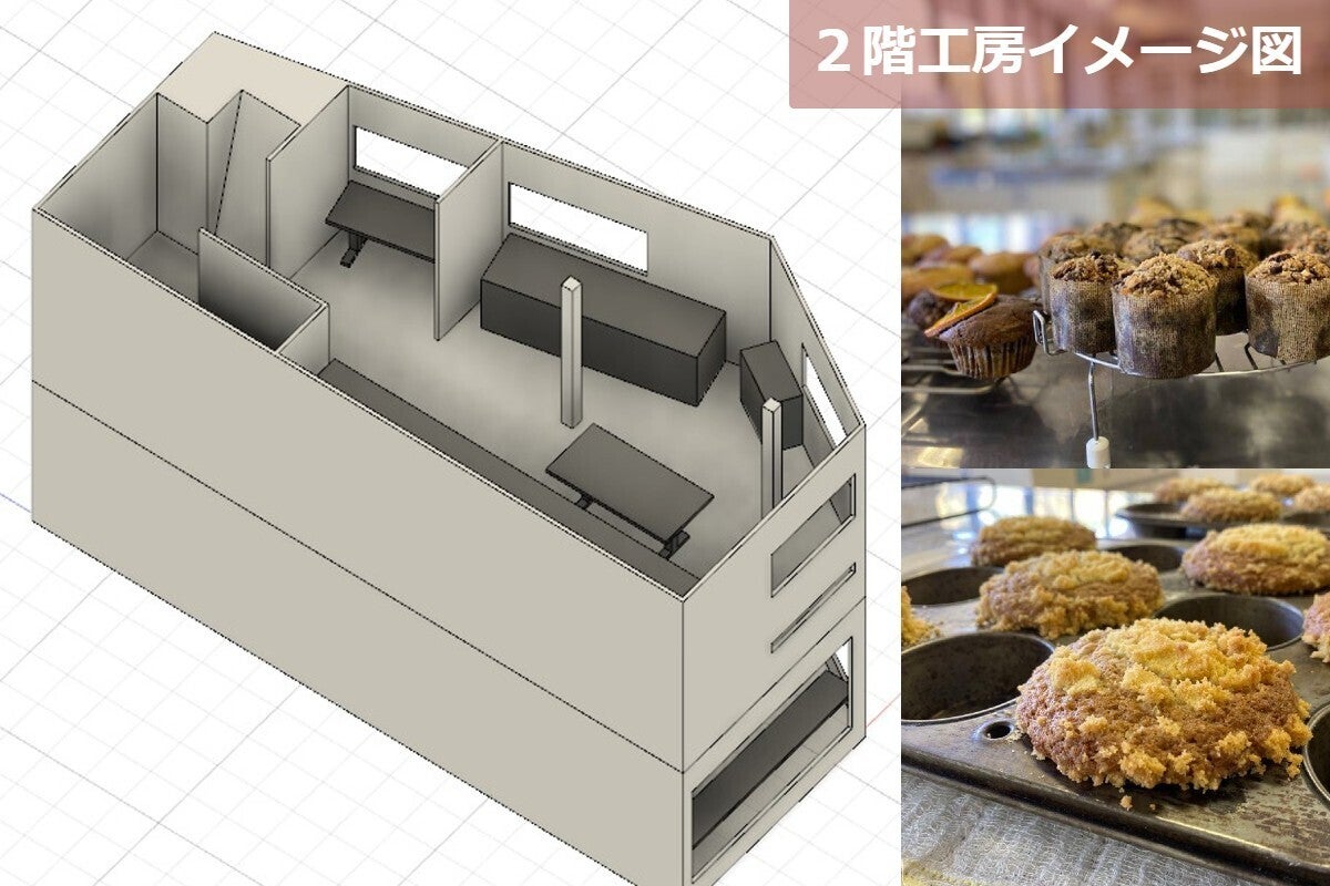2階は専用菓子工房を設置。1階カフェでのテイクアウトはもちろん、通販・卸販売の対応幅をアップ!コロナ渦のように人との接触が気になる状況でも、 テイクアウトでマフィンやコーヒーを楽しめます。