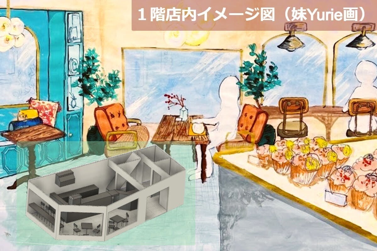 ①1階はカフェ、2階は菓子工房!テイクアウト×イートインで楽しめる場所に!