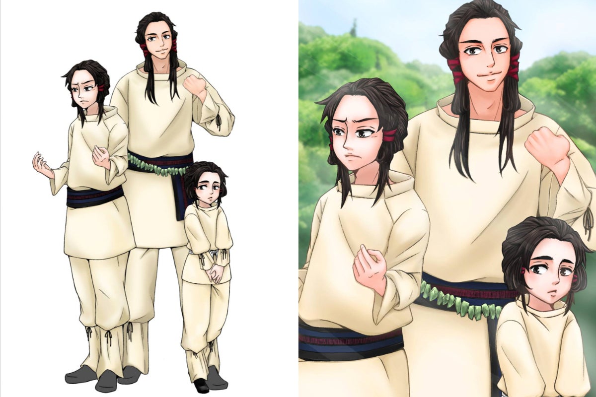 丹生川町には両面宿儺の伝説が様々な形で語り継がれています。その伝承を元にして、オリジナル脚本を作成しました。そのお話をイメージしながら、地元のデザイナーが描いたキャラクター(下)がこのマンガの主人公「ニショウ」です。