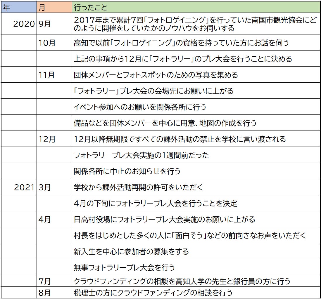 今までフォトラリー実現までに行ってきたことをご紹介いたします。
