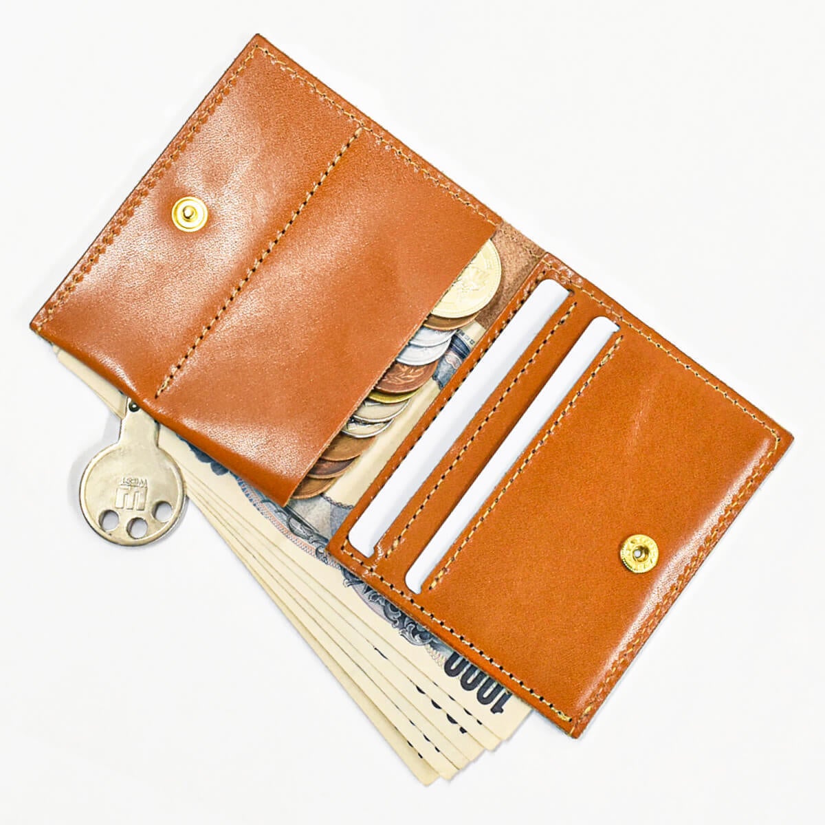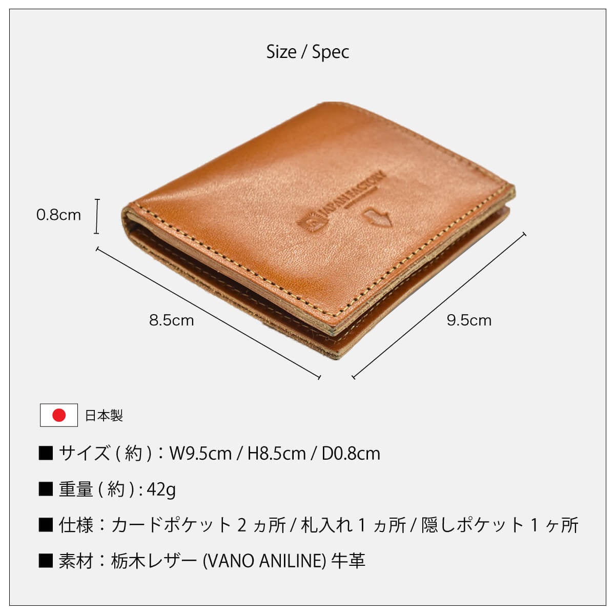 蓋のない構造で薄く、小さく、そして手軽に。ミニマルな新しい日常へ。ポケットに適したコンパクトさ。84年の歴史を持つ、栃木レザーの最高峰「VONO ANILINE」