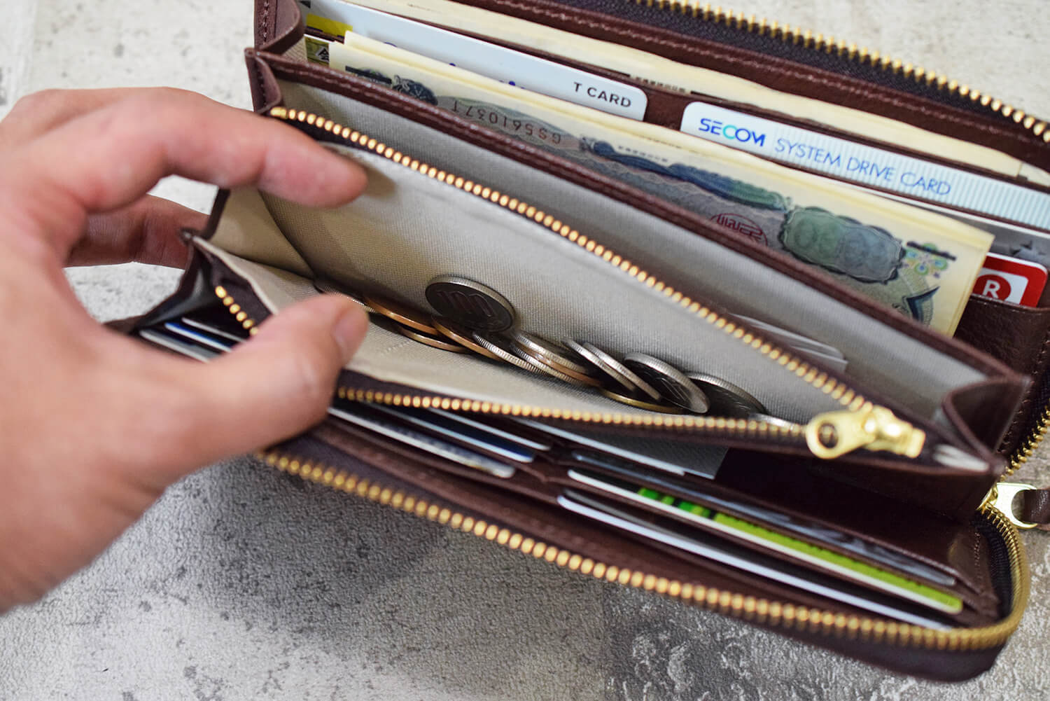 指の第一関節までがスッと入って、指先で小銭を選ぶのに適した深さです。