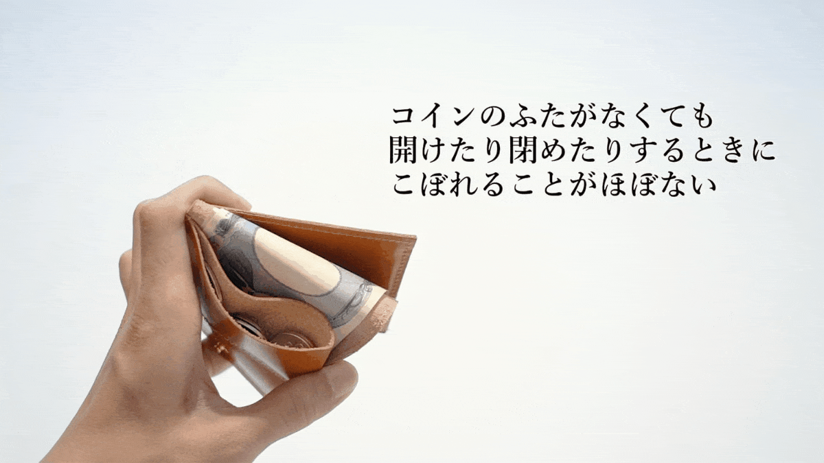 大きな財布が主流だった以前は小銭入れにも広いスペースを使用し、広く見渡せることがメリットでした。しかし同じ構造で小さな財布を作ると「底に溜まり膨らむ」「取り出しづらい」というデメリットになるという結論に至りました。
