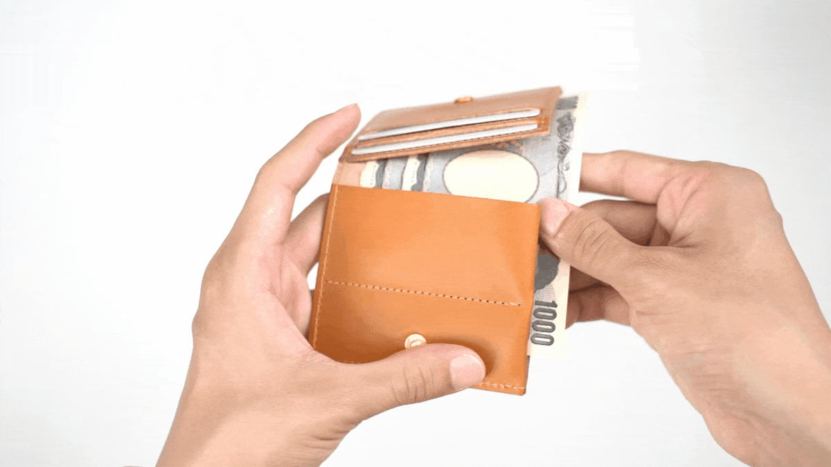 紙幣は全体を繋いでいる革で優しく畳まれるので折り目がつかず、取り出しも中央からサッと引き出すことが可能です。