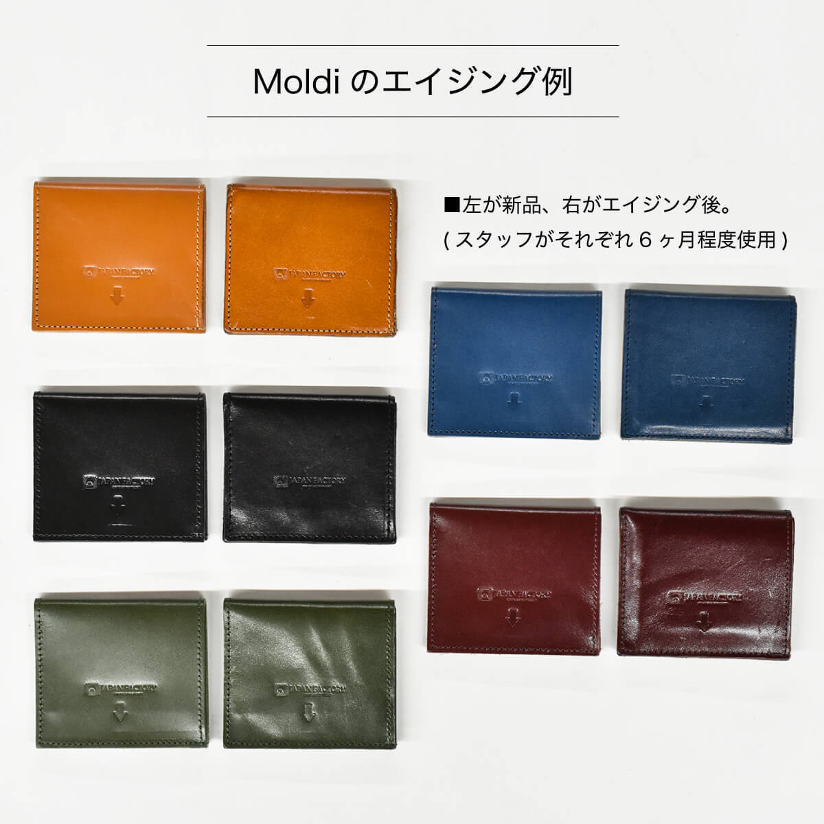 Moldi 栃木レザーの硬くて薄い蓋のない財布 ( 2021年4月 )
