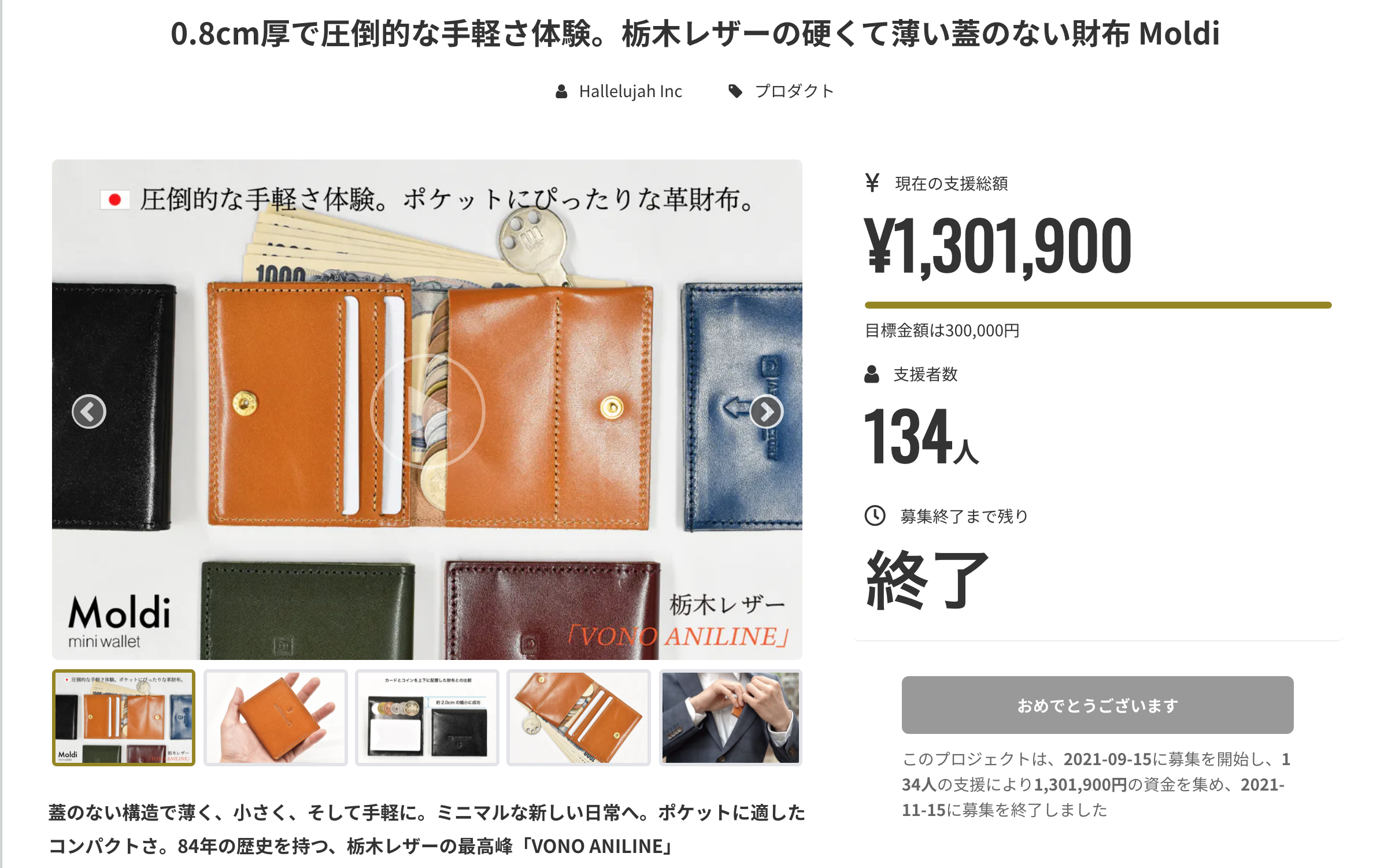 • 大変お待たせいたしました!本日11月末まで発送分すべてのMoldiの発送が完了となりました。配送方法につきましてはゆうパケット(メール便)※一部複数ご支援の方へはヤマト(宅配便)で大阪より発送、2~3日以内にお届け予定です。※沖縄県、離島にお住いの方はお日にち頂戴する可能性がございます。配送や商品に関しましては、お問い合せよりご連絡をお願いいたします。今回のリターンの発送をもちまして、ご支援いただきましたすべてのMoldiシリーズの発送が完了となっております。たくさんのご支援をいただきありがとうございました。これからも皆様からいただくお声を励みに、よりよい革製品をお届けできるように日々精進してまいります。お届けいたしましたMoldiが長くご愛用いただけるものになりましたら幸いです。この度は誠に、ありがとうございました。Hallelujah Inc. もっと見る