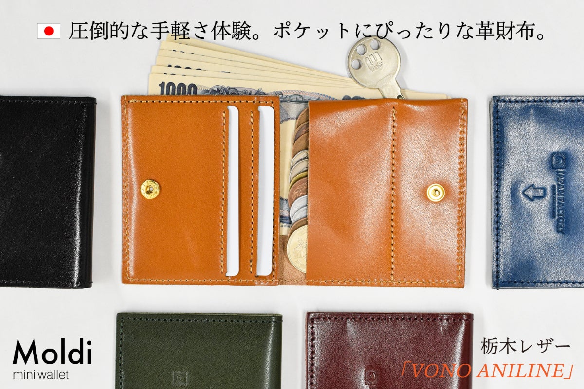 0.8cm厚で圧倒的な手軽さ体験。栃木レザーの硬くて薄い蓋のない財布 Moldi