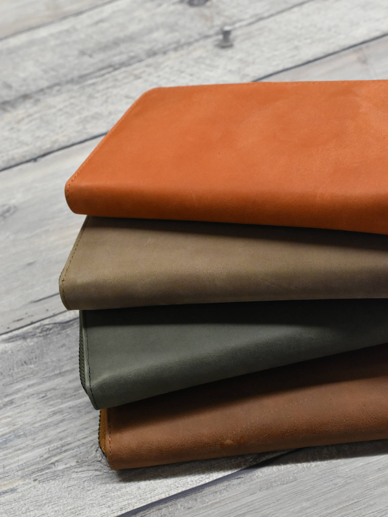 使用して半年も経つと、本革は新品とはまた違った質感や色合いに変化していきます。使い込むほどにツヤと深みが増していく様子は「革を育てる」という言葉がぴったりな、楽しみの一つです。