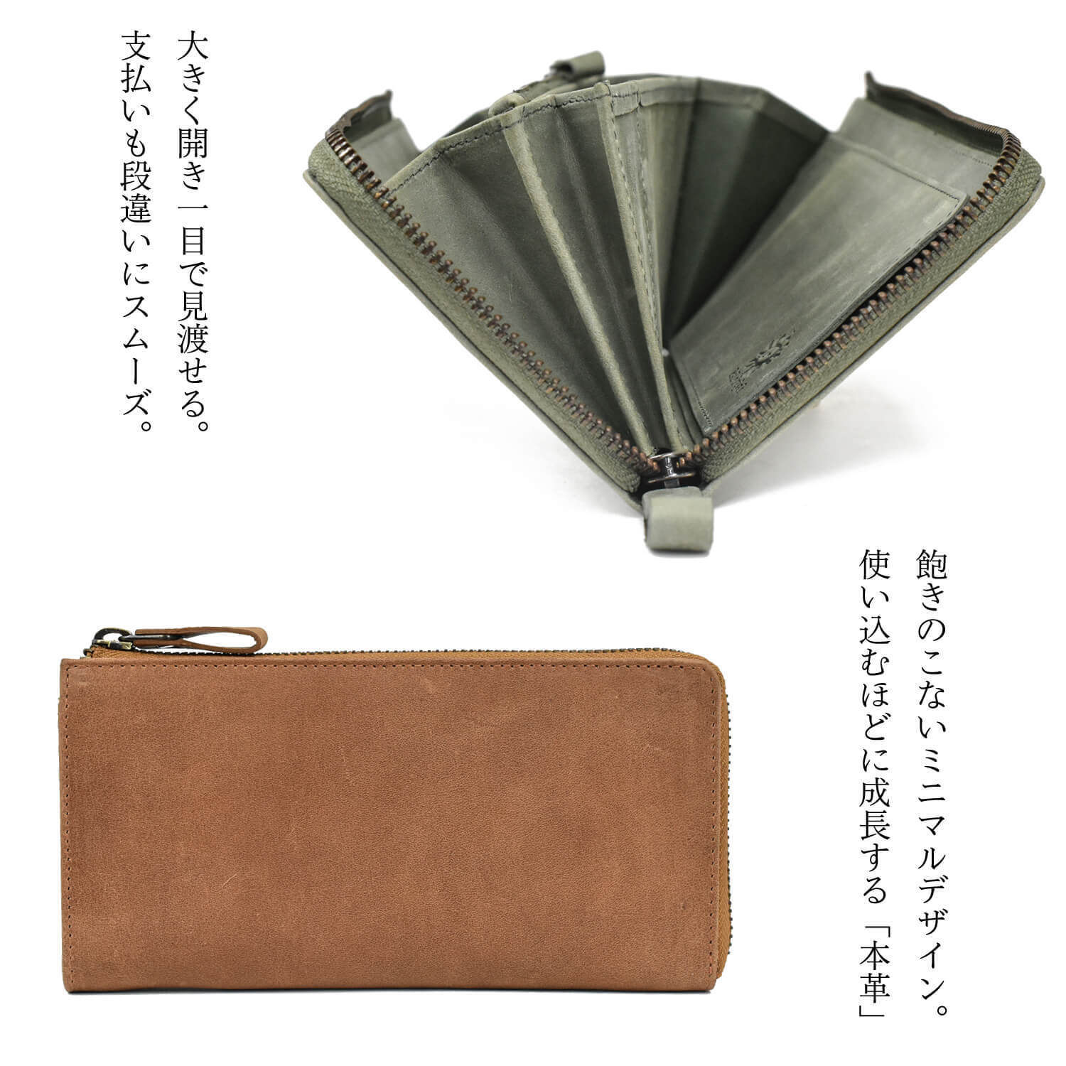 オールレザー長財布「TIDY - タイディ」は収納導線を考えた設計で財布の中を整理整頓できるだけでなく、オイルをたくさん含み経年変化しやすい、あなたが育てる財布です。