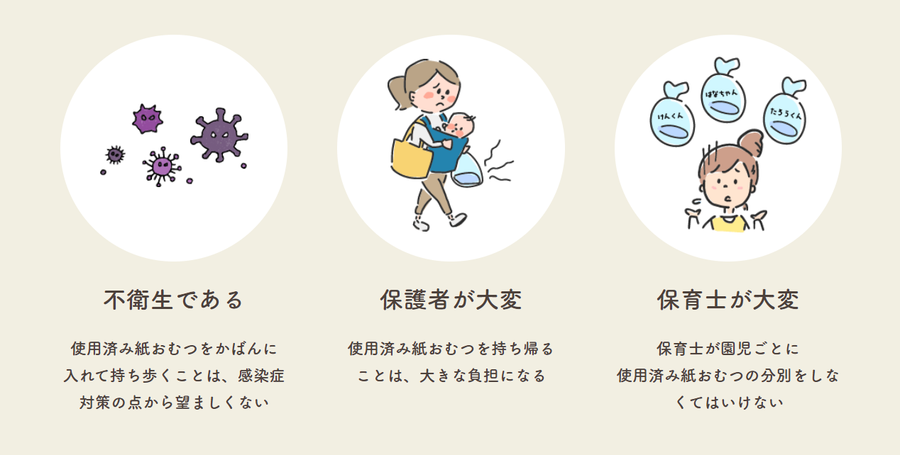 こんにちは!保育園からおむつの持ち帰りをなくす会です。
