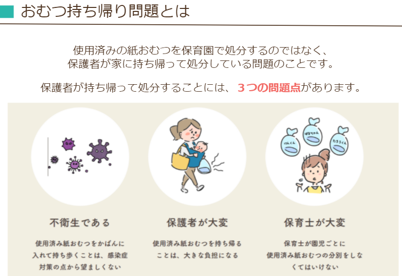 ▶1、保育園からの使用済み紙おむつの持ち帰り問題とは