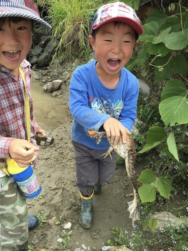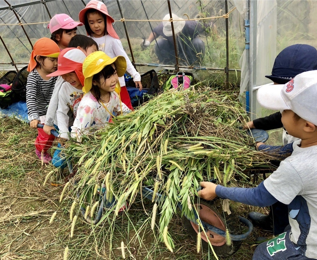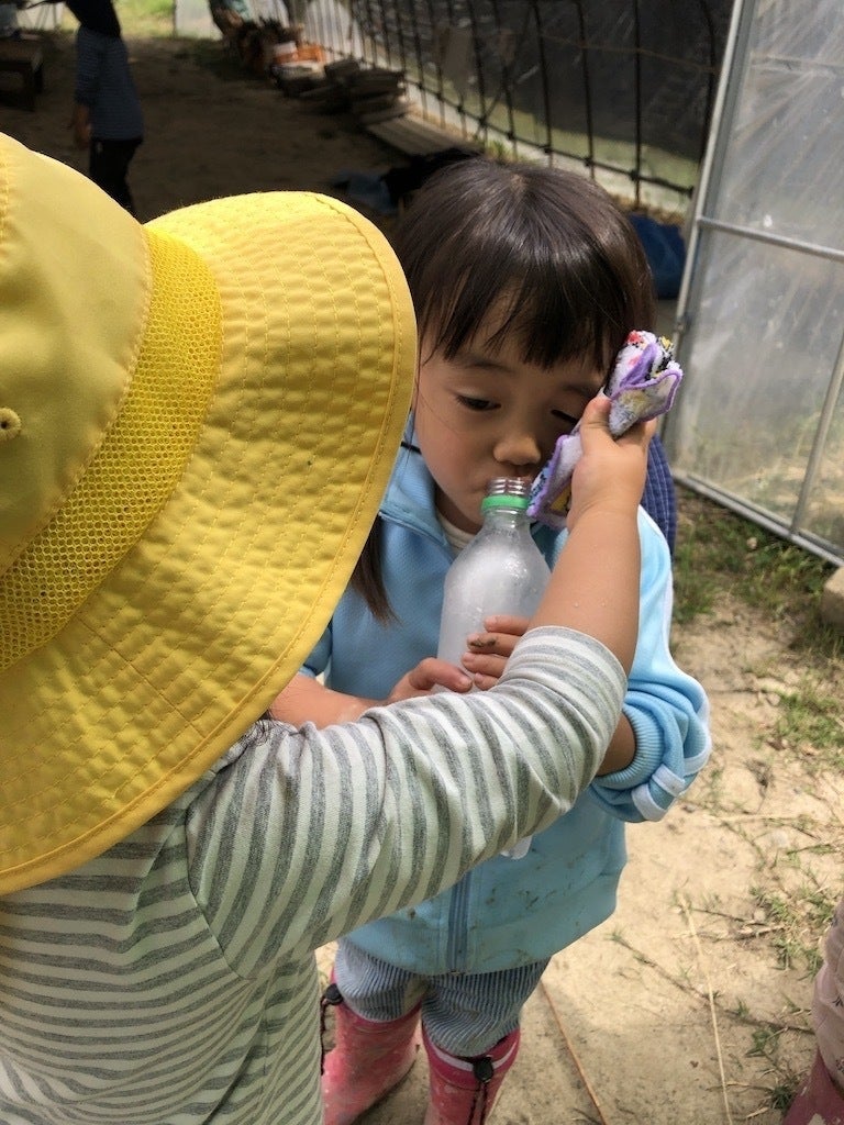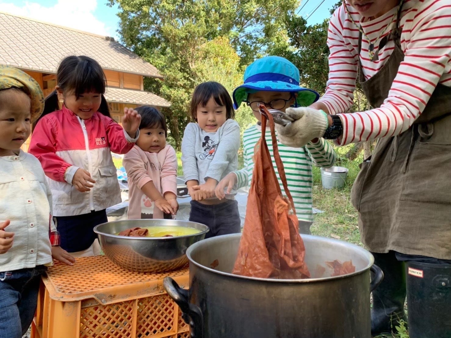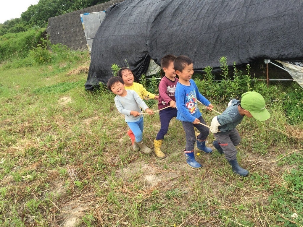 「わっこ。」は「森のようちえん」(森のようちえんって?)で、普通の幼稚園と違い、畑が園舎のかわりで、建物はありません。野あそび舎 わっこ。Instagram ←日々の「わっこ。」がご覧いただけます。