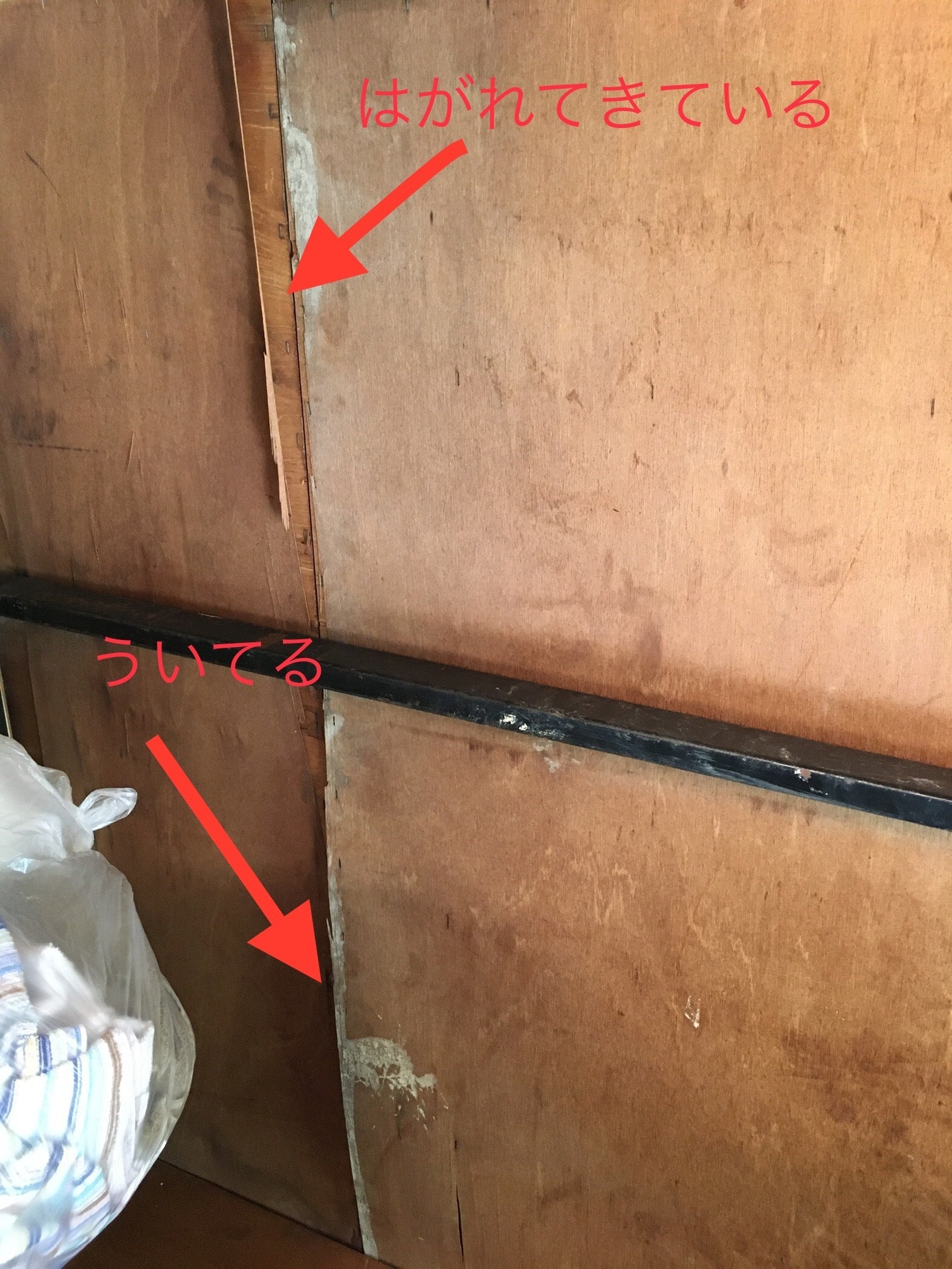 倉庫として使っているプレハブの、床の歪み、壁の湾曲などを補修します。