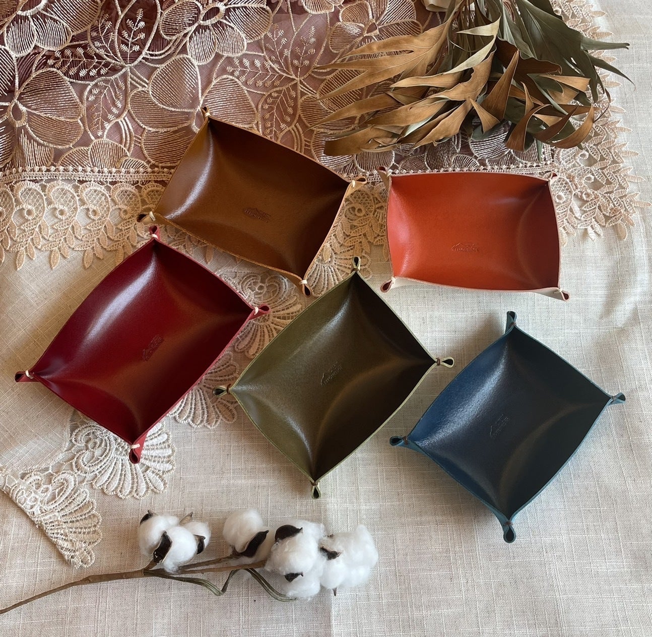 「わっこ。」のボランティアスタッフでもある、lemonedge、革作家さんの「わっこ。」のために作ってくれた、オリジナル革のトレーです。
