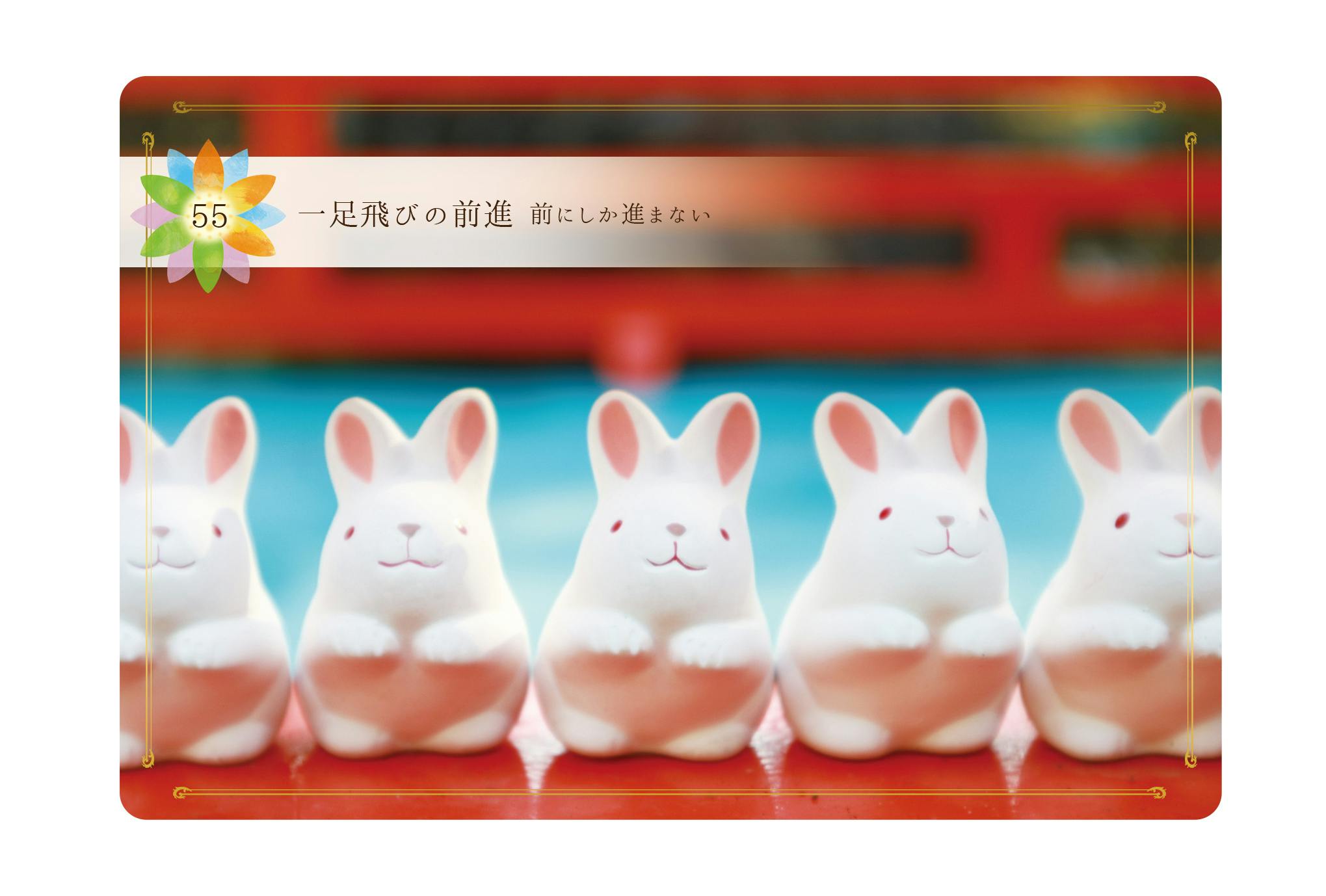 55番のスペシャルカードはテンションが上がりまくる解説内容となっております。Beアップオラクルカードは「飛躍」「背中を押す」「癒し」が最大のコンセプトです。カードリーディングで使わずとも、今日は自分を元気つけたい、今日は張り切って過ごしたい、今日は穏やかに過ごしたいなどなど、あなたをサポートする一枚として日々カードを活用していただくこともできます。