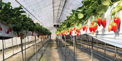 栽培方法は高設栽培で腰の高さの所に苺がぶら下がっていて取りやすく、土も使わず養液を染み込ませた培地に苗を植えるので、苺も清潔で洗わずにそのまま食べられます。土を使わないので、病害虫も少なく農薬の使用量も抑える事ができます。