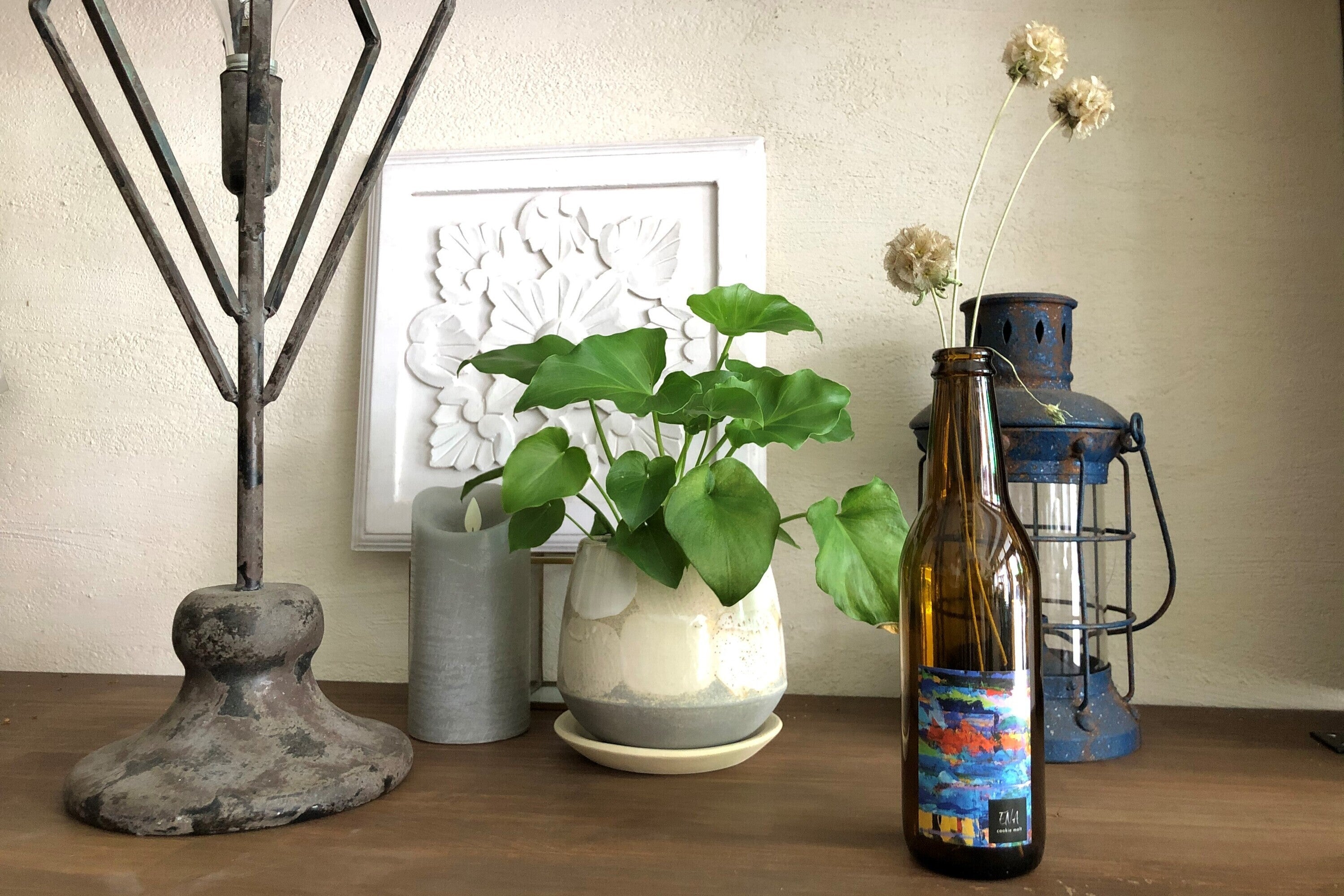また、飲み終わったビール瓶は、花瓶や香水のスティック立てなどのインテリアとして使えるようなラベルデザインにしています。
