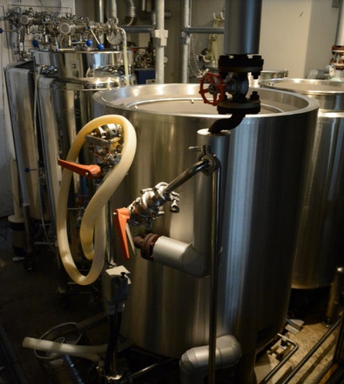ロスクッキーはアルコールとなり、麦芽やホップなどの原材料をタンクに投入する際に、クッキーも一緒にタンクに投入します。クッキーの糖分が酵母により分解されて、アルコールになります。