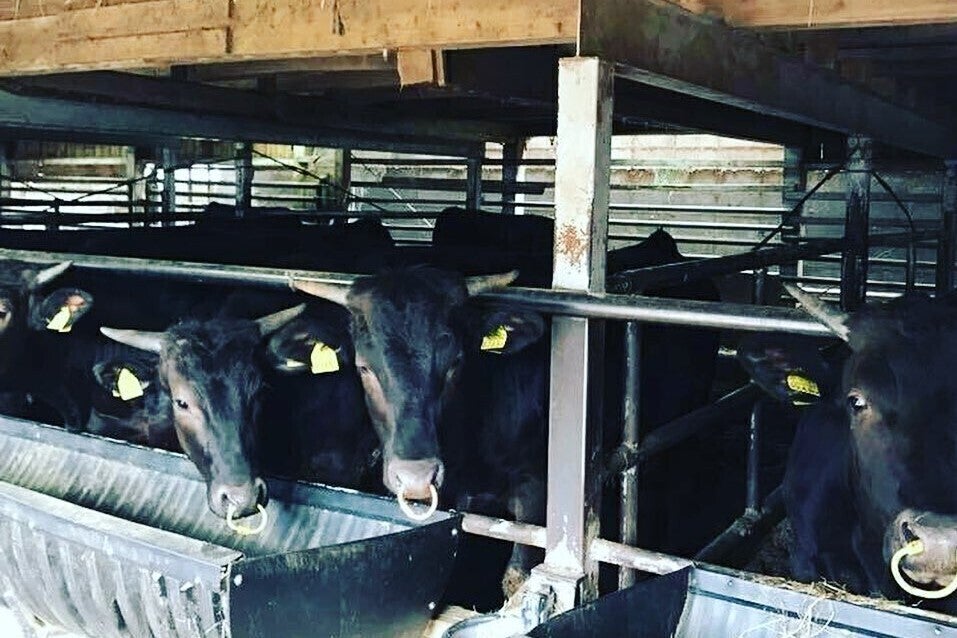 餌を食べる牛たち