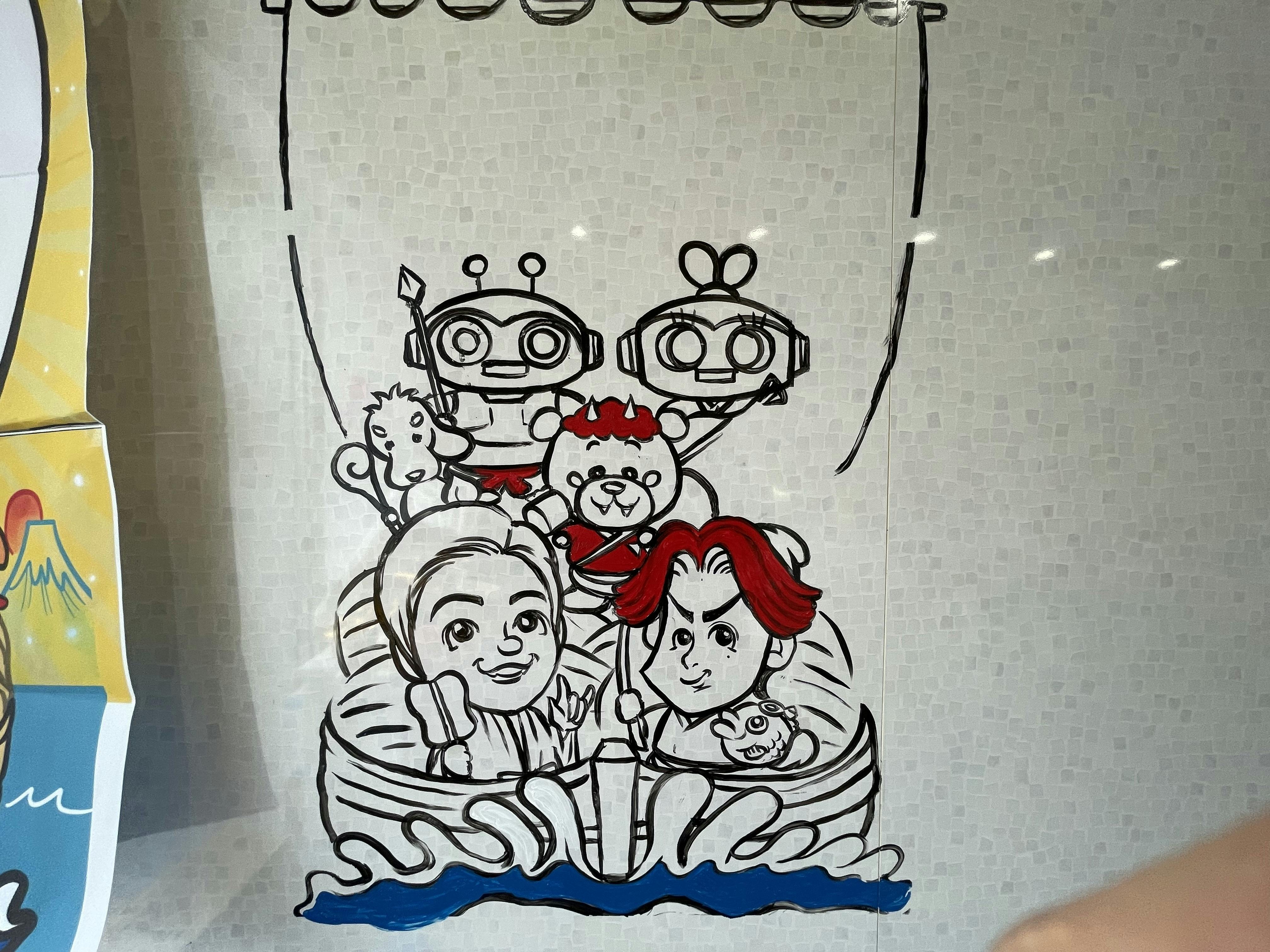 メンバーとパペコちゃんとでペンキを塗りながら、土台作りを行なっております。