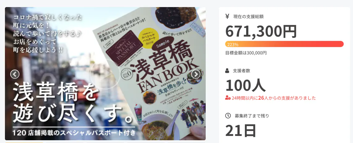 この数字をもっともっと増やしていけるように、これからの約20日間、いろいろな発信にトライしていきたいと考えていますので、すでに支援いただいた方々も一緒に楽しんでもらえたらうれしいです。