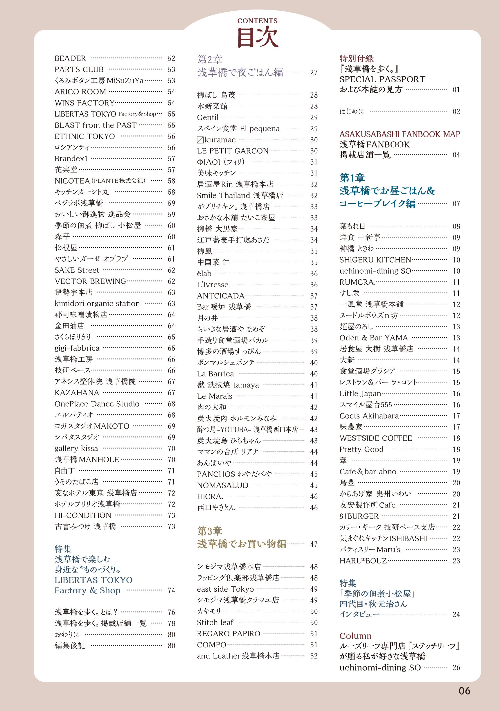 浅草橋に住んでいる人なら誰もが知っている名店から、今、話題沸騰中の新しいお店まで。このFANBOOKがあれば、新旧含めていろいろなお店のことがわかっちゃうという寸法なんです。