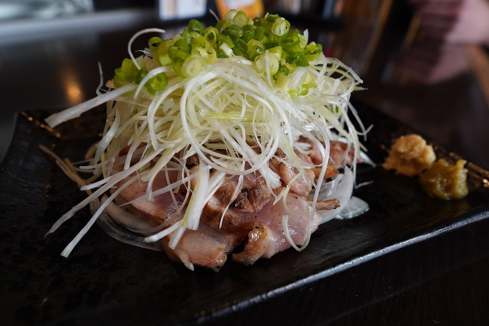 校正をしながらずっと気になっていたのが、この「宮崎地鶏のたたき」。たっぷりのネギと自家製ポン酢がかかっていて、お酒が進みそうな1品。さっぱりとした味わいで、ゆず胡椒のパンチが効いているんだそう。今すぐ食べたい!