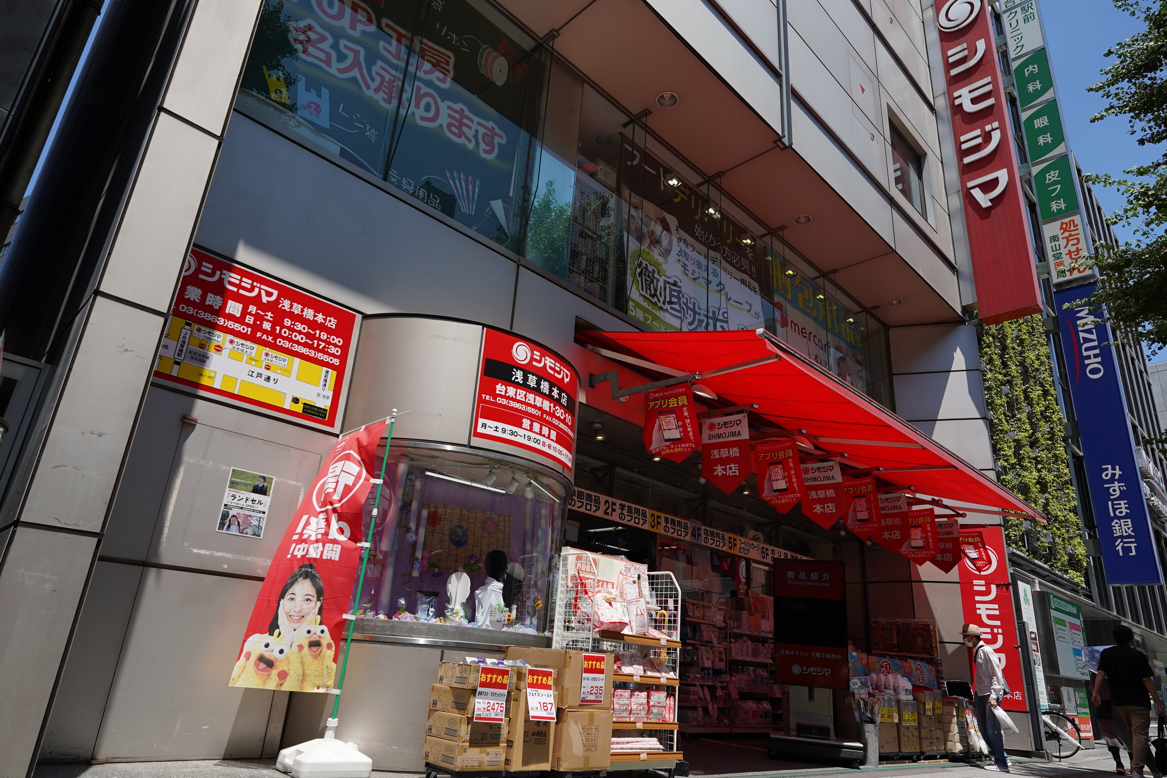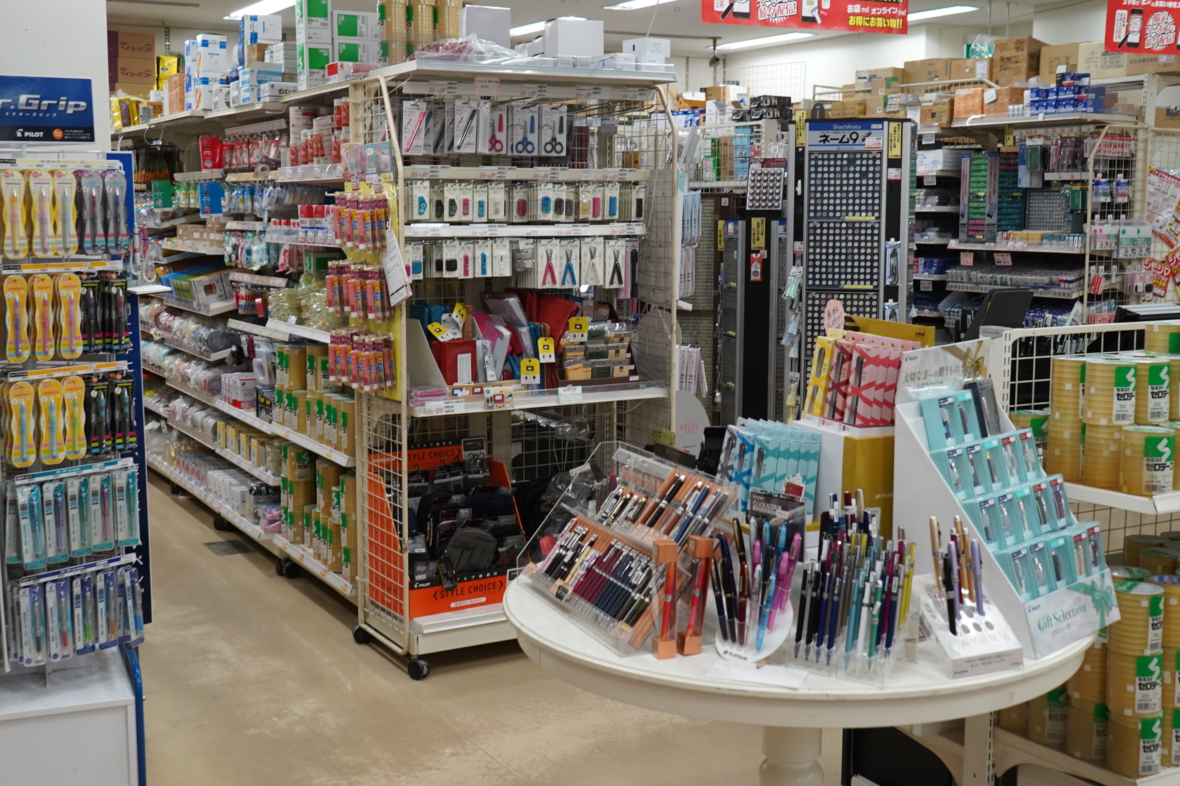 我らが「シモジマ」さん! 10万点以上の商品が並ぶ、文房具や包装材料を中心とした問屋さんです。何か困ったことがあったら「シモジマに行っておいで!」が、バシッ子の合言葉。ここに来れば、大体解決します。