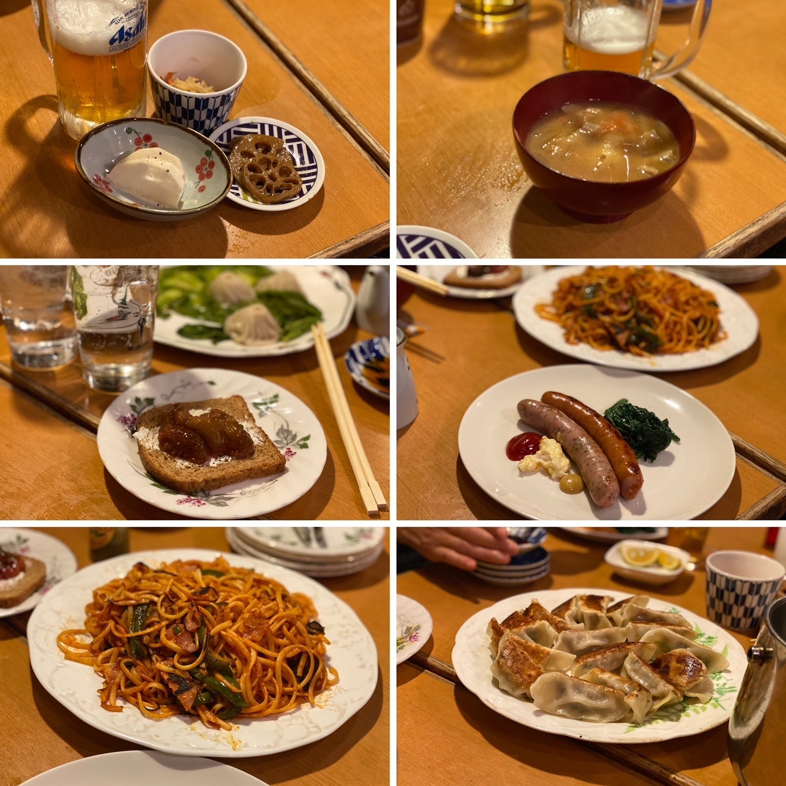 この日も、気のきいた酒肴三種盛りから豚汁、いちじくソースの乗ったパンに、焼売、ソーセージと、怒涛のように押し寄せるおつまみラッシュ、最後はシメのナポリタンで終わりかと思ったら、その後にまさかの手作り餃子まで降臨するという最強コースでした!
